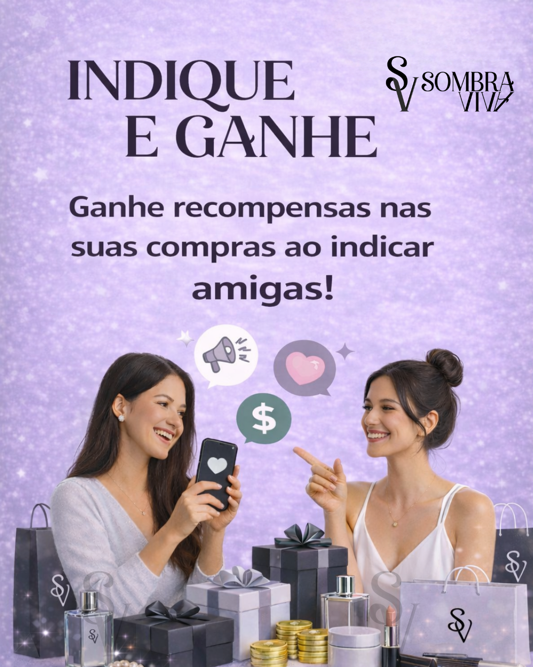 Indicar amigas na Sombra Viva é simples. Quando você indica, ambas ganham.