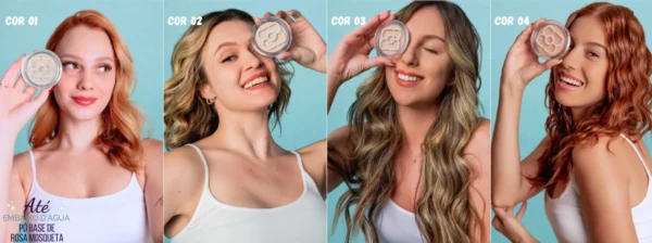 Assim como a Coleção Até Embaixo D'água, que conta com ingredientes exclusivos para uma performance excepcional, o Pó Base de Rosa Mosqueta tem pigmentos ultra resistentes à água e ao suor, não oxida quando aplicado e ainda possui Chá Verde, Niacinamida e a amada Rosa Mosqueta em sua composição!