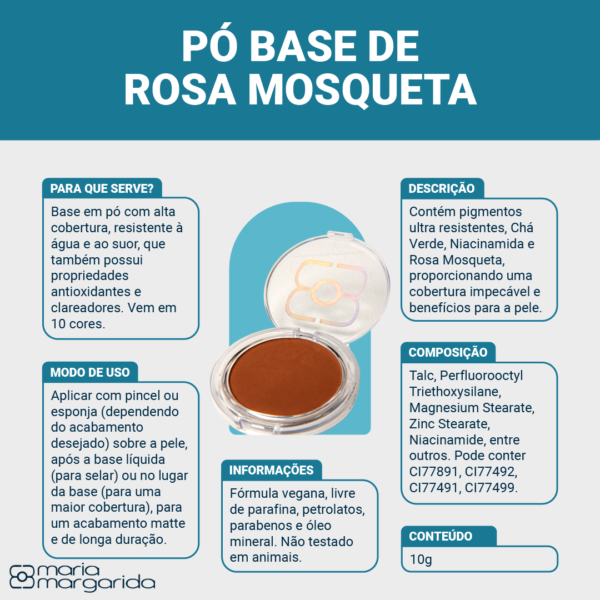 Pó Base de Rosa Mosqueta Compacto Altíssima Cobertura Até em Baixo D´água – Maria Margarida